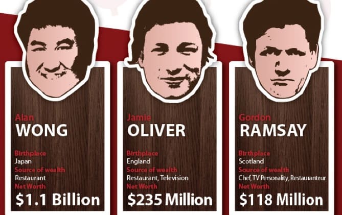 Here is the full list of richest chefs in the world by net worth and an infographic: we guess it's all down to opinion.