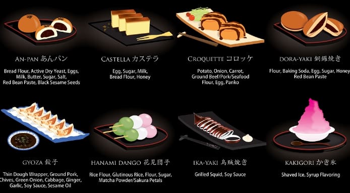 How much do you know about Japanese snacks? This fun and colourful infographic from the Japanese Foodie blog helpfully details 25 Japanese snacks and street foods (in fact many snacks started out as street food), with the ingredients of each listed below too.