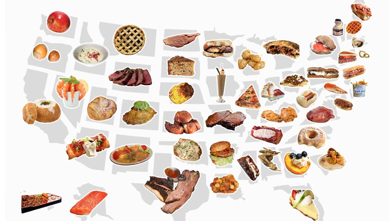 51 different parts of the U.S defined by their dishes, from Mud Pie in Mississippi to Lobster Rolls in Maine - take a tasty tour across the U.S.