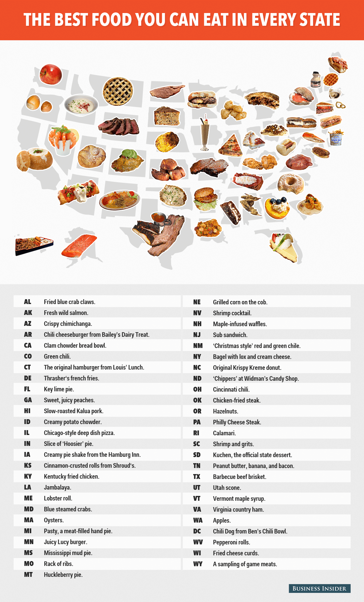 With this in mind the team at Business Insider have published their annual lists of the best foods by state across America.