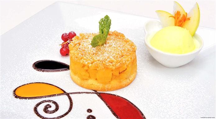 Try this gourmet version of apple crumble with calvados apple sorbet fromSwiss Diamond Hotel's Egidio Iadonisi Click here for the recipe.