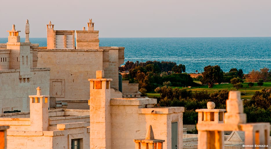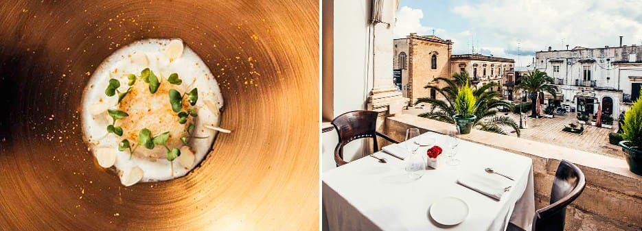 Borgo Egnazia, in Savelletri (Brindisi) is one of the most famous and luxurious establishments, particularly well known among American celebrities who come here on holidays to occupy the suites or the exclusive villas in the village. Its walls, furnishings, ornaments and fabrics are all white, and so is the restaurant managed by executive chef Domingo Schingaro and supervised by starred coach Andrea Ribaldone.
