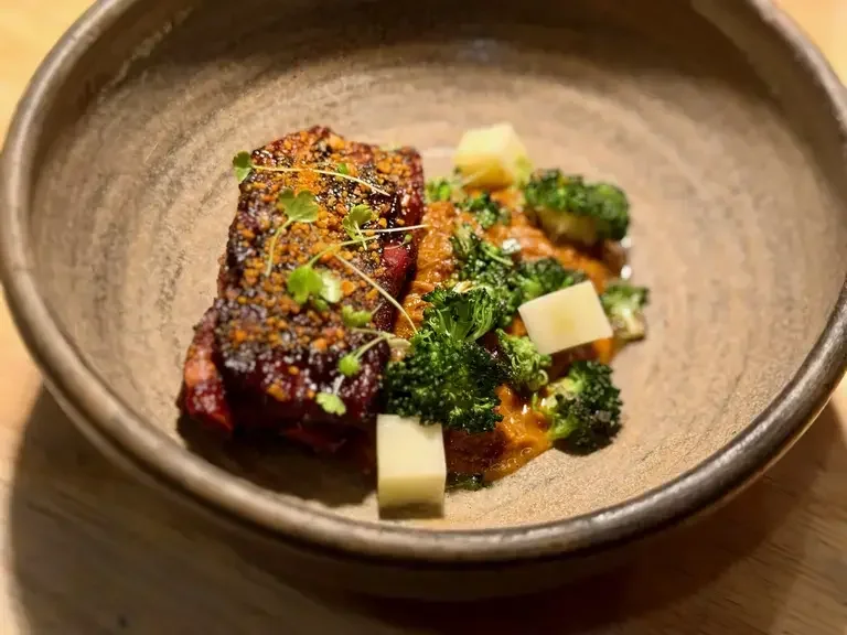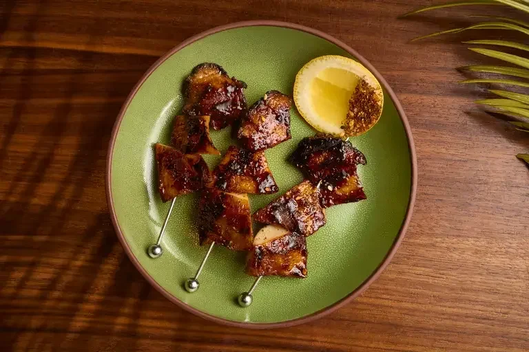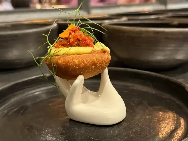 The final dish that arrives is a glistening jerk chicken platter garnished with fresh herbs, edible flowers, and pan jus. The pièce de résistance, it is as striking as a steak at Matū or the pork chop at Jar. What was once dismissed as a fast-casual, to-go staple is transformed into a signature dish. The glamorous setting may differ from how Caribbean food has traditionally been presented in Los Angeles, but it reflects a noteworthy shift that is happening across the fine dining landscape.