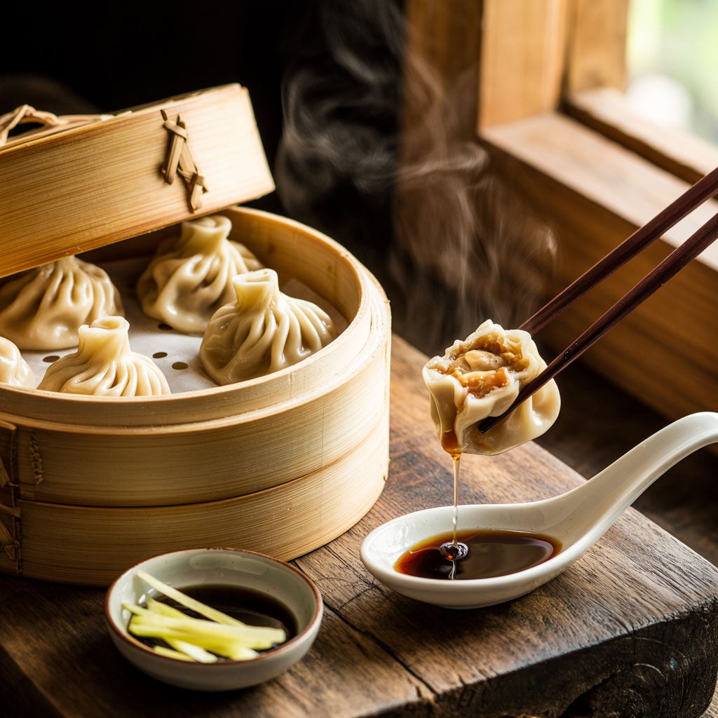 The magic of xiao long bao lies in its construction. The filling includes gelatinized meat stock that melts into liquid during steaming, creating the signature soup inside each dumpling. Eating them requires technique. Place the dumpling on a spoon, bite a small hole in the wrapper, sip the broth carefully, then eat the rest with a dab of black vinegar and shredded ginger.
