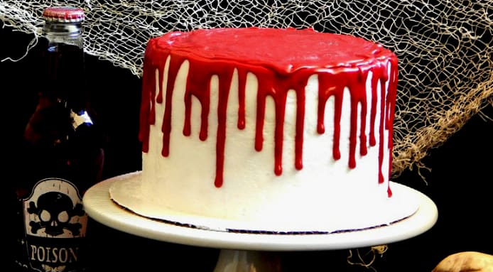 Here's a bloody cake for Halloween that screams ''horror'' from the moment you cast your eyes on it. Covered in snowy white buttercream with dripping 'blood' this cake really looks killer. It is definitely one of the spookiest Halloween cakes we've seen.