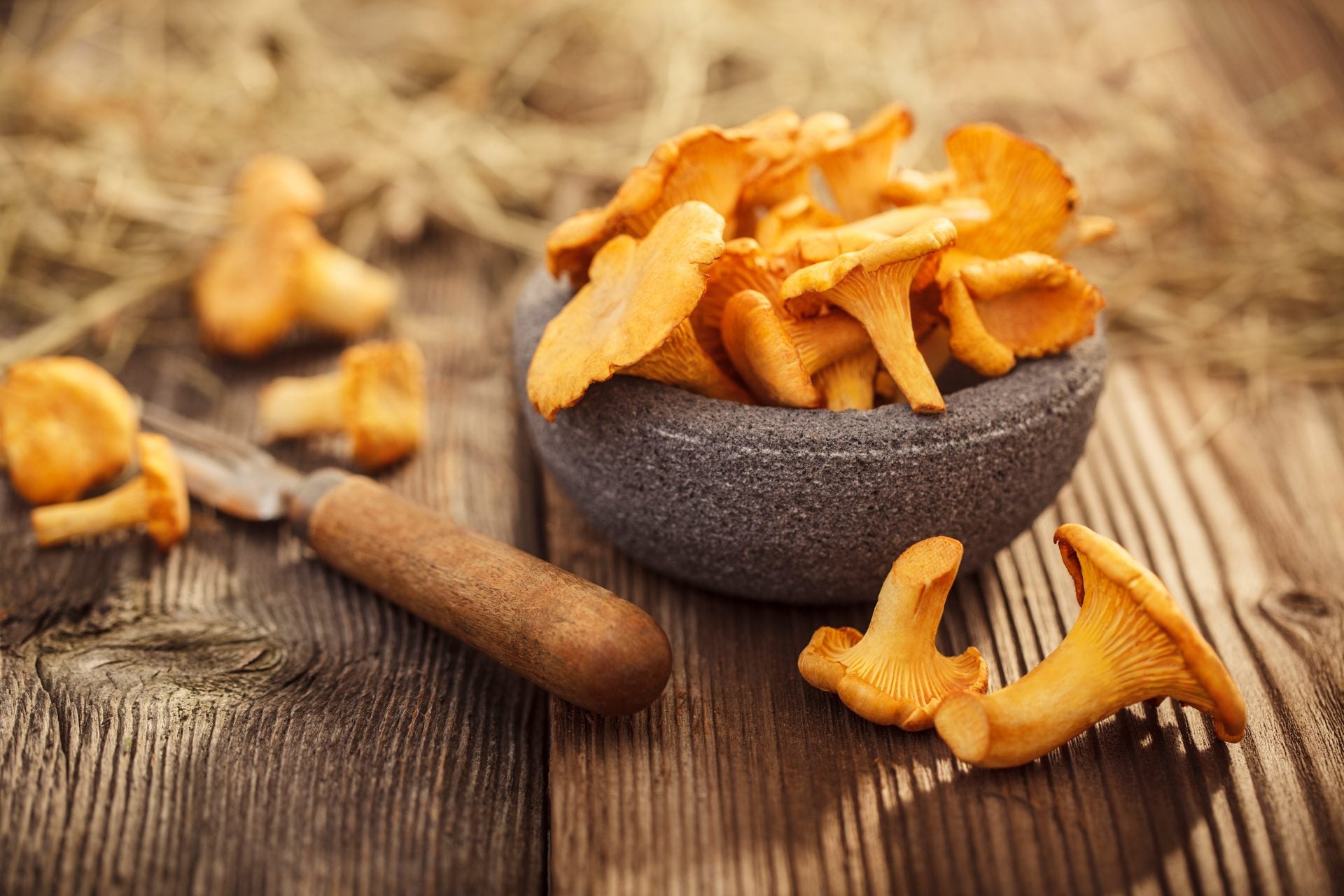 There are over 10,000 different types of mushrooms, with many different shapes and flavours. The main difference between chanterelles and other mushrooms is their sweet, apricot-like scent, and rich, complex flavour. They tend to have a slightly funnelled, open-vase shape, as opposed to the typical ‘mushroom shape’ of white mushrooms, button mushrooms or baby bella.