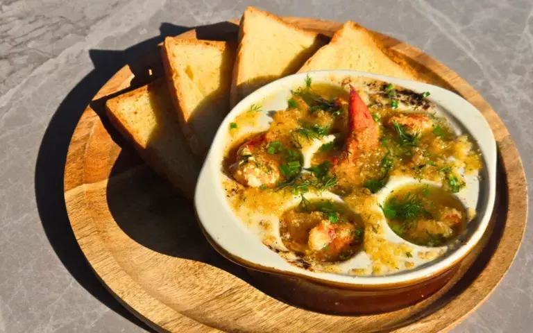 Take their lobster escargot: “We deconstructed the classic, envisioning both escargot and the Connecticut-style lobster roll—warm, with butter,” explained McGinty, who has long preferred this style over the cold mayonnaise preparation favored in Maine, for the way the butter makes the lobster shine. “This dish invites our guests to savor the lobster, dip their brioche into the warmed, seasoned butter, and build a perfect bite, from start to finish, every time.”