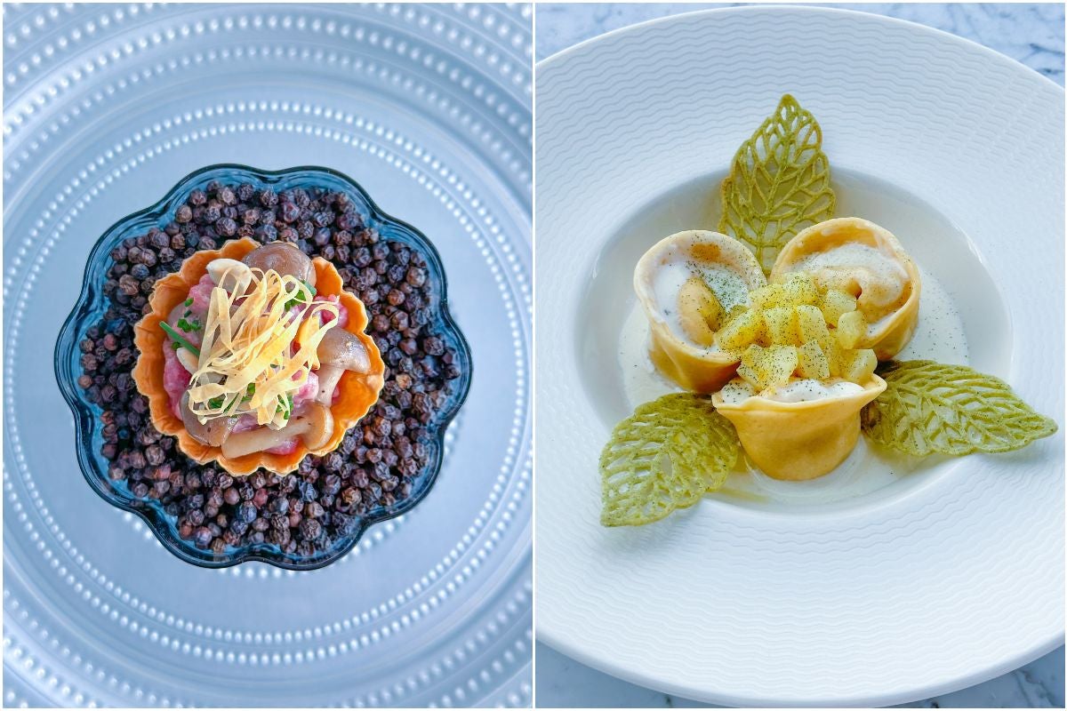 The seasonal menu’s seven courses read like a non-traditional journey through Italy. There’s homemade ricotta with tomato confit and focaccia that oozes on the plate. Next is her ‘Almost a Carbonara’ a gnocco alla Romana with house-cured guanciale, crispy artichokes, and grated egg yolk. Her ‘Forest Medley’ is a tartelette with mushrooms, beef tartare and caramelised onions. ‘Is it Winter Yet?’ is a pumpkin tortelli with orange, candied pears and the most mouthwatering pecorino Romano fondue. She ends the savoury section with ‘Rollin’, a filet mignon stuffed with Prosciutto di Parma and Parmigiano Reggiano that tastes a million times better than it looks.