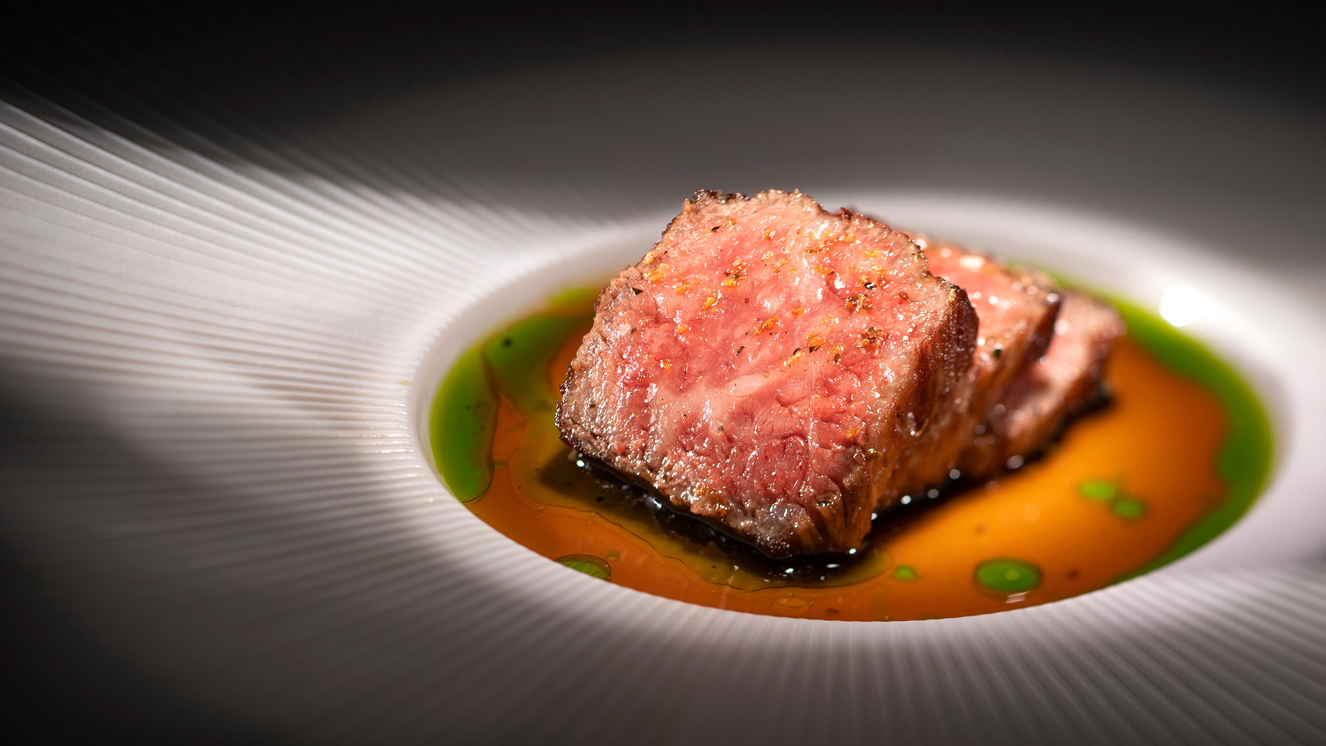 For $250, diners choose between the kiku (omnivorous) or hasu (vegetarian) pathways through the restaurant’s kaiseki experience, a seven-course progression that varies by day and by the chef’s inspiration. The meal begins with ichiju sansai, inspired by the cha-kaiseki ritual of “four bowls,” followed by sashimi, hassun (small seasonal bites), a warm or chilled intermezzo meant as “a moment to pause,” a main course of Japanese-French fusion, a final savory sushi dish and a “peaceful finish” of seasonal dessert and matcha whisked tableside. A lighter version of the experience with smaller portions is available for $150.