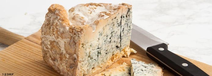 Legend has it that the first blue cheese was discovered by accident near Roquefort, France, when a shepherd was in a cave snacking on cheese made from sheep’s milk. The story goes that he abandoned his meal after spying a beautiful maiden outside. When he came back months later, the cheese was shot through with the now emblematic blue-cheese penicillin mould.