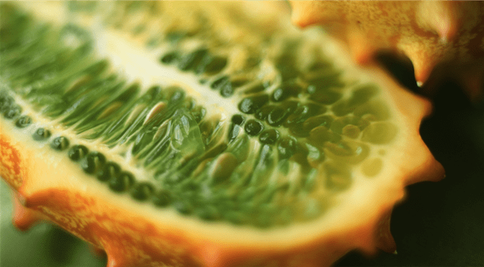Also known as African horned cucumber and horned melon, kiwano is the fruit of a plant native to Africa: the Cucumis metuliferus, of the Cucurbitaceae family (the same as the watermelon and melon).