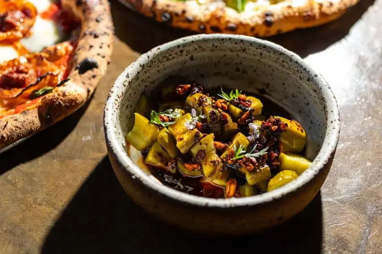 Deciding what flavors you want to achieve will help determine whether you pickle or ferment. At Grá, fermentation takes center stage, but some dishes—like the signature Pickled Cucumber Salad—call for an external acid like vinegar for sharper, quicker results.