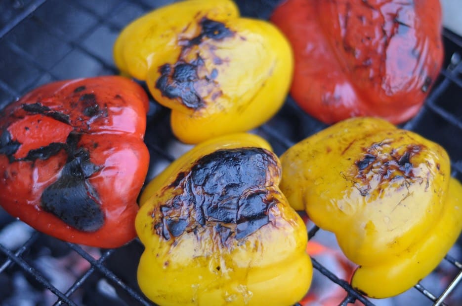 Simply place the peppers under a hot grill until the skin blisters and turns partially black. Then, place the peppers in a plastic food bag while still hot. After about 10 minutes, remove the peppers and slip off the skin. This technique can also be done using a flame on the stove or with a blow torch, being very careful not to burn yourself.