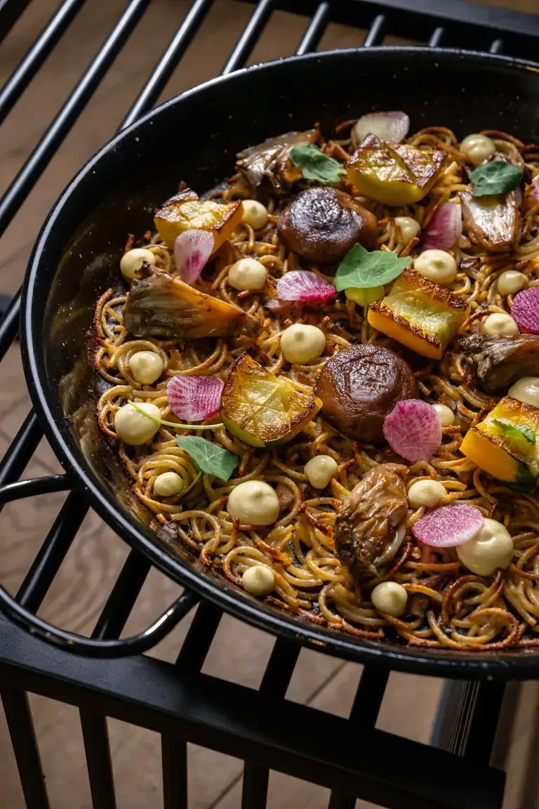 “Japanese cuisine has an incredible way of honoring purity, balance, and precision,” says Bradley Kilgore, chef-owner of ama in San Francisco. Kilgore opened the itameshi (Italian–Japanese) restaurant in September after years of incorporating Japanese ingredients into his European-style cooking. Take his Lumache Diavolo, a playful twist on the lobster classic, with a creamy vodka pomodoro sauce spiked with Italian and Japanese chilies and finished with red yuzu kosho. Or his bluefin tuna carpaccio on crispy sushi rice with Calabrian chilies and ‘nduja, a riff on spicy tuna.