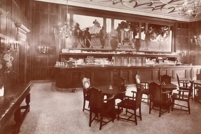 Despite its notoriety, the bar managed to feel under the radar, and its secluded atmosphere was part of the draw for these Gilded Age socialites. “There was an entrance to the hotel in the subway station just below us,” Miller says. “So people could easily go in and out without being seen.”