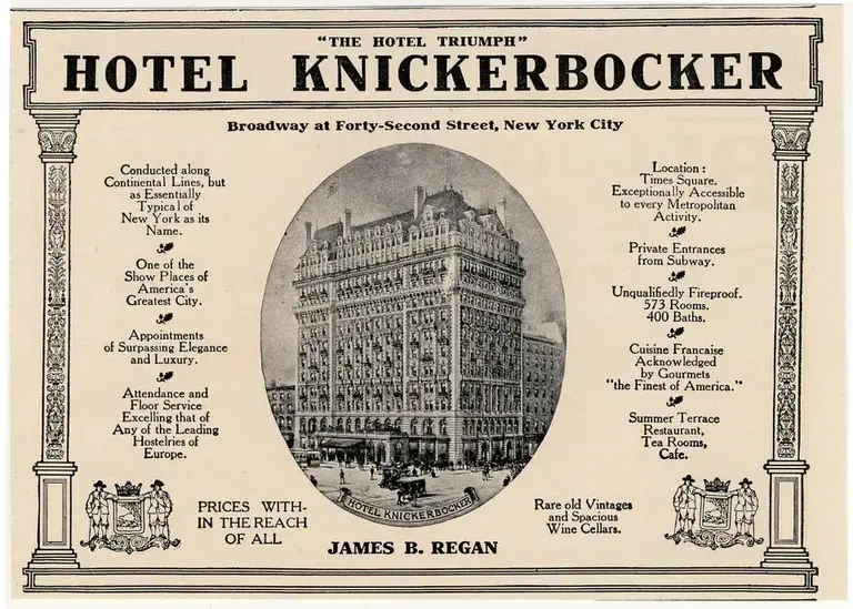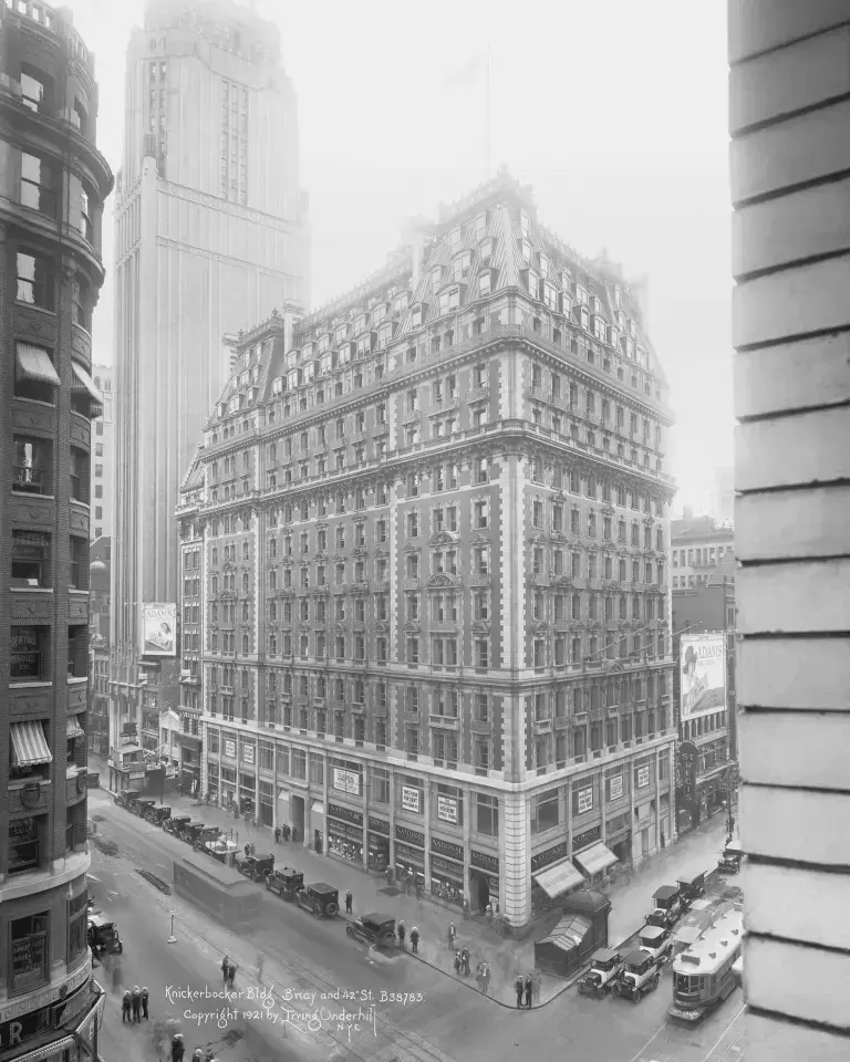 When John Jacob Astor IV opened The Knickerbocker Hotel in 1906, it joined a group of legendary spaces that helped catapult the city into a travel destination. Just steps from the newly minted Times Square, the hotel quickly became a gathering place for the city’s elite, including opera singer Enrico Caruso, playwright George Cohan, and author F. Scott Fitzgerald, who referenced it by name in his debut novel This Side of Paradise, noting that the bar was “well crowded.” Dozens of deals were made while leaning against the bartop, from real estate changing hands to Babe Ruth verbally committing to play for the Yankees.