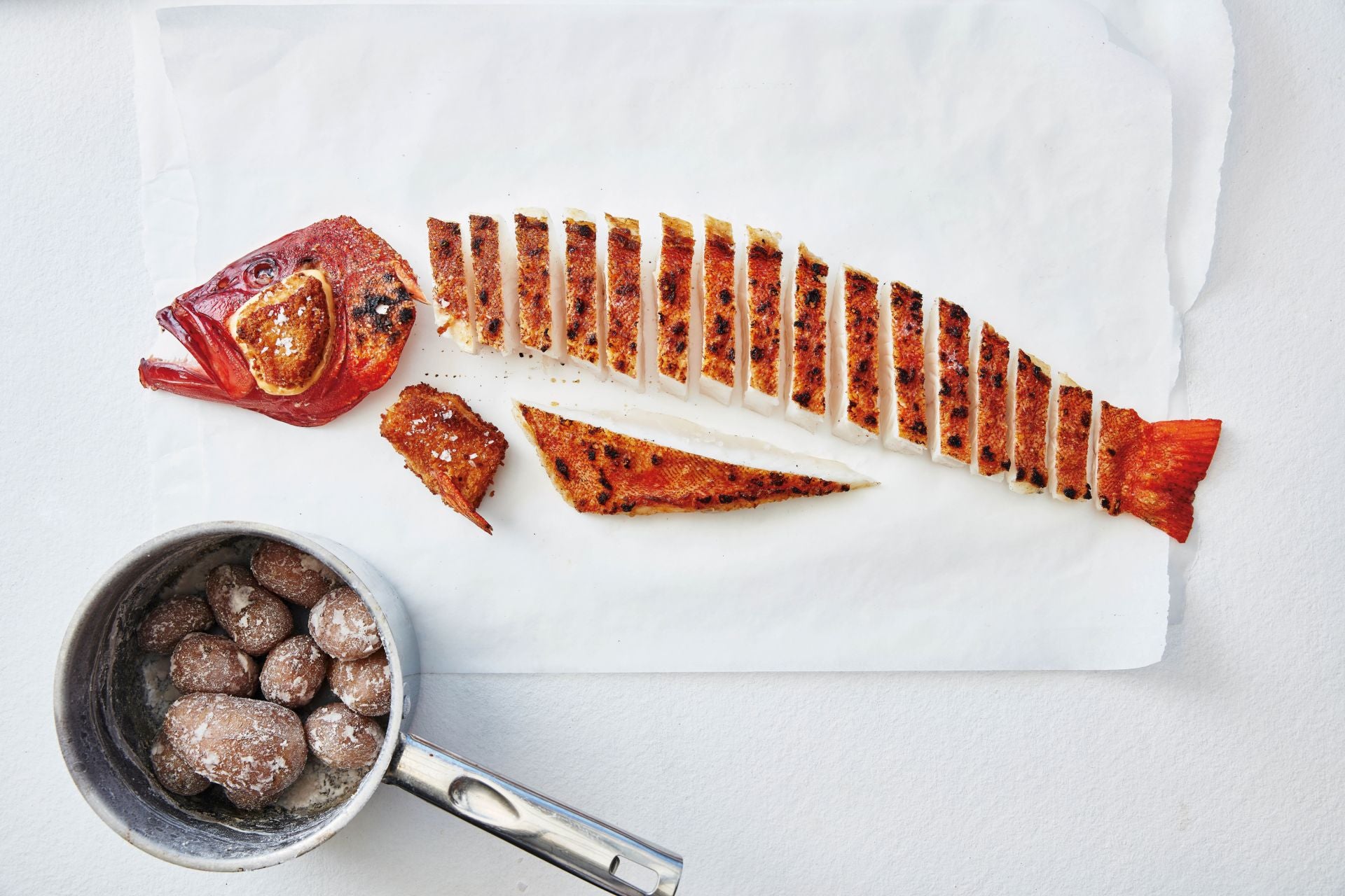Niland, from sustainable seafood restaurant Saint Peter in Sydney, also recently opened an informal fish shop in the city, Charcoal Fish, based on the grilled-chicken shop model. The menu centres on the locally available Murray cod fish and includes whole rotisserie cod with chips, grilled collars with fermented tamarind hot sauce, gravy made from the heads, frames and fins, even caramel ice cream using rendered cod fat.