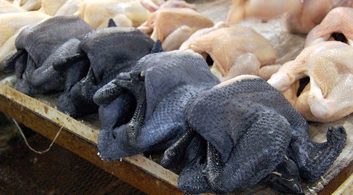 Originally from Java, the chickens are credited with having mystical powers and are traditionally eaten as part of ritual, as well as being considered as status symbols and used in traditional medicine preparations to cure a variety of ailments.
