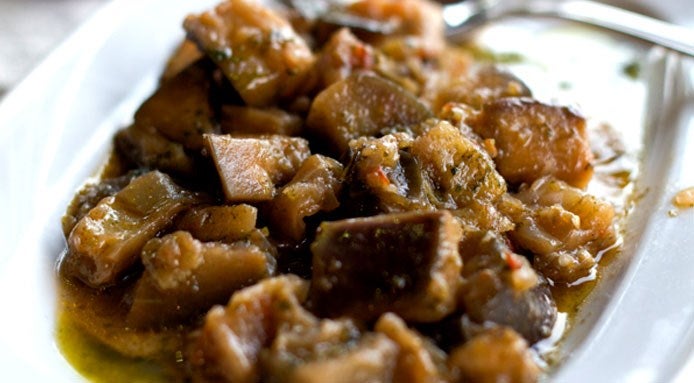 Porceddu. The typical Sardinian recipe for roast suckling pig is the dish that pairs up perfectly with myrtle: once cooked, the meat is laid on myrtle branches which give it an enticing aroma. The firewood used to roast the pig is equally important: according to the Sardinian tradition, the porceddu (suckling pig) should be roasted using a mix of juniper, myrtle, bay tree and olive wood and has to be hung up tied to a strawberry tree branch.