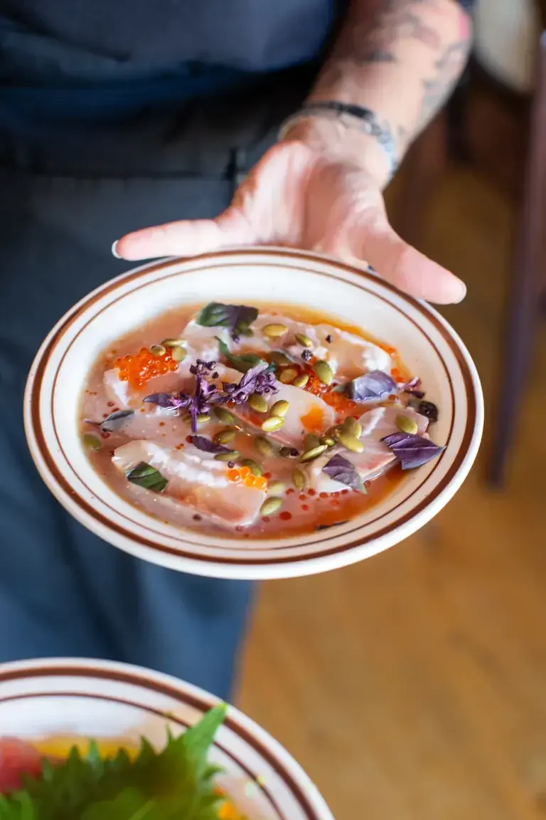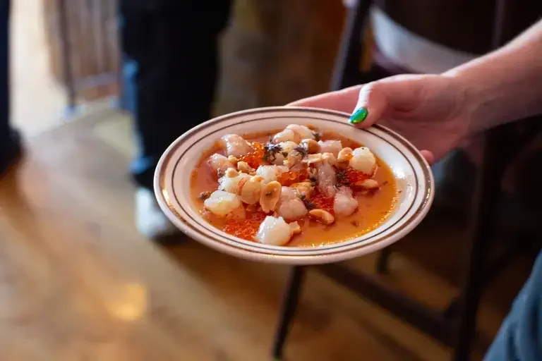 I first met Phila in 2022, in the most unlikely of circumstances, when a different restaurant was on his mind—something akin to a bottle shop but with food. We had both been chefs in residence at José Garces’ Volver the year before. The program functioned as an incubator for personal projects: mine was transforming my former restaurant Poi Dog into a sauce company, and Phila’s was a Cambodian concept called Puck and See. We were flown out by Garces Group’s then-parent company, Ballard Brands (Garces Group has since been acquired by SPB Hospitality, in July 2024), to the Global Food Service and Hospitality Exchange hosted by Revelry Group in Sun Valley, Idaho. My first real conversation with Phila was in the food court at O’Hare, where we met up for McDonald’s coffee and breakfast during our layover. Phila was nervous, going over his talking points on a sheet of paper.