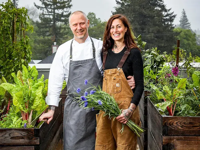 When Kyle and Katina Connaughton talk about sustainability, they don’t lead with slogans or certifications—they lead with soil. At the core of SingleThread’s identity is that 24-acre farm where Katina oversees a no-till, biodiverse operation focused on habitat preservation, pollinator health, and regenerative practices. “We’re farming on a hand scale,” Kyle says. “It’s small, it’s intensive, and it’s deeply intentional.”