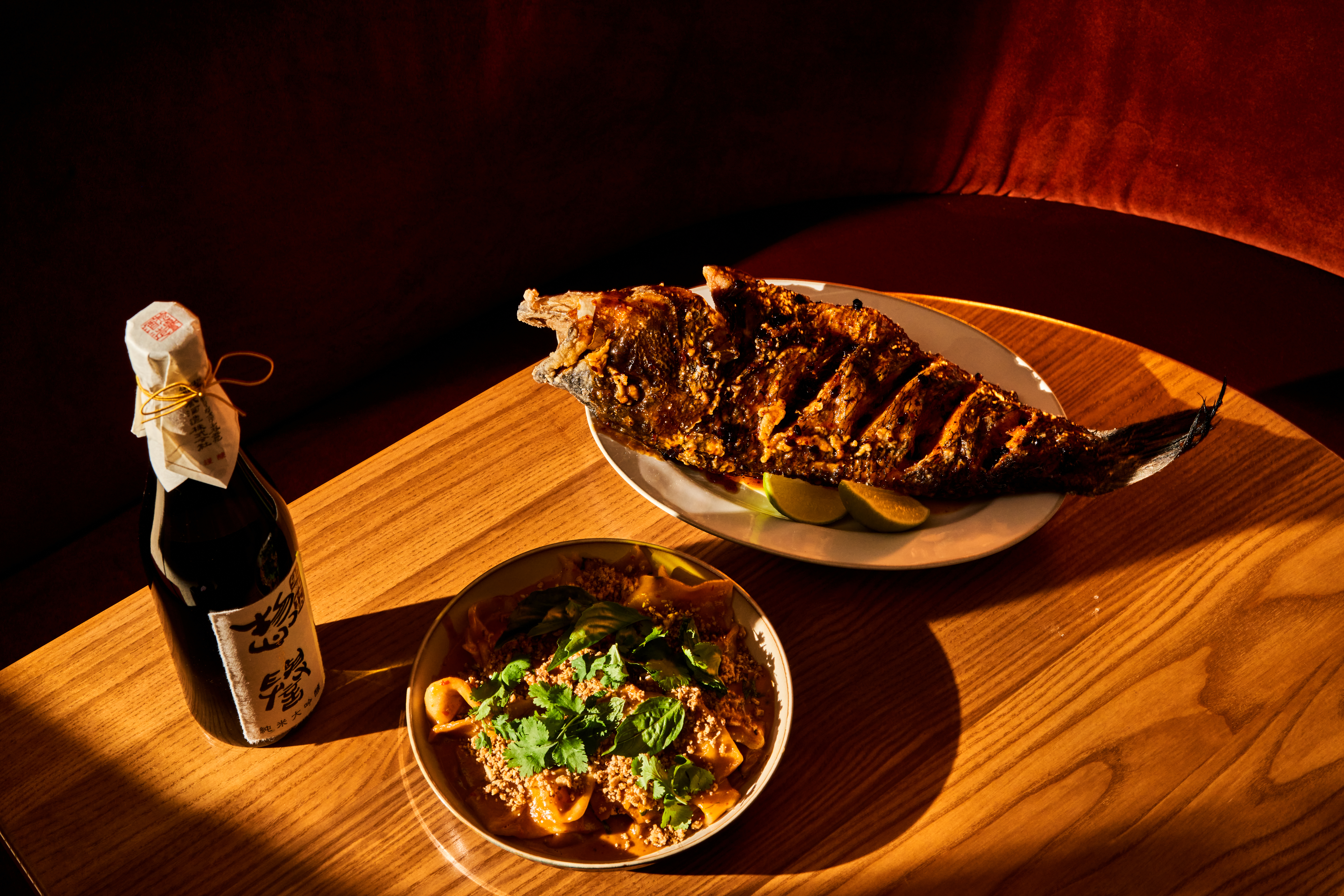 His three-course Lunar New Year menu begins with the aptly named Longevity Noodles, tossed with spicy sesame sauce and peanut dukkah. For the entrée, Chang suggests serving a whole fish to “make for a fun family style meal that everyone can share,” a key part of Lunar New Year celebrations in China.