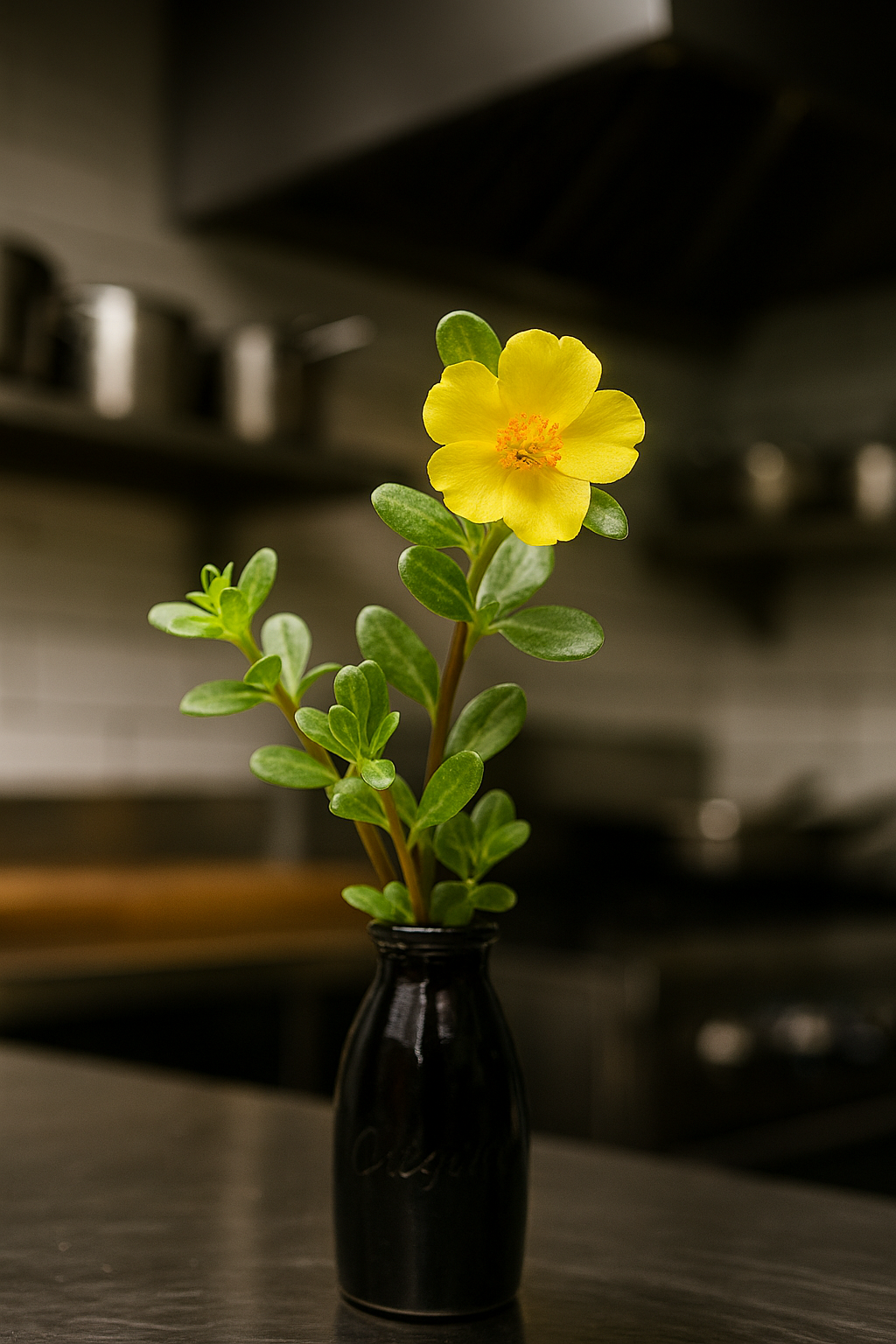 I fell in love with purslane because my husband loves it. The two are inextricably linked for me. Ari’s former restaurant Musi evolved so fully around purslane that its leaves—stylized in a graceful shrug, adorned with a single yellow flower, and gilded with gold leaf—became the restaurant’s logo.