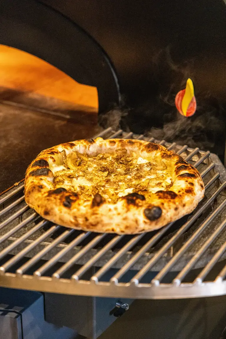 One of the clearest expressions of that philosophy is Le 7 Consistenze della Cipolla, a pizza built entirely around a single ingredient prepared seven different ways. In Italian cooking, onion is often a supporting player, rarely the star. Martucci wanted to change that. Using one variety of onion transformed through smoking, fermentation, crisping, caramelization, gel, marmalade, and cream, the pizza becomes a study in depth and restraint. For Martucci, it’s an exercise in how technique can elevate even the most humble ingredient into something unexpected.