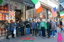 Calabria Pork Store is in a small neighborhood in the Bronx that’s protected. It’s like Little Italy, but a lot less touristy. They make their own salumi. It’s a shot gun-shaped room and they have the deli on one side with the glass case and then they have all the salumi hanging above you on bars with sawdust on the floor.