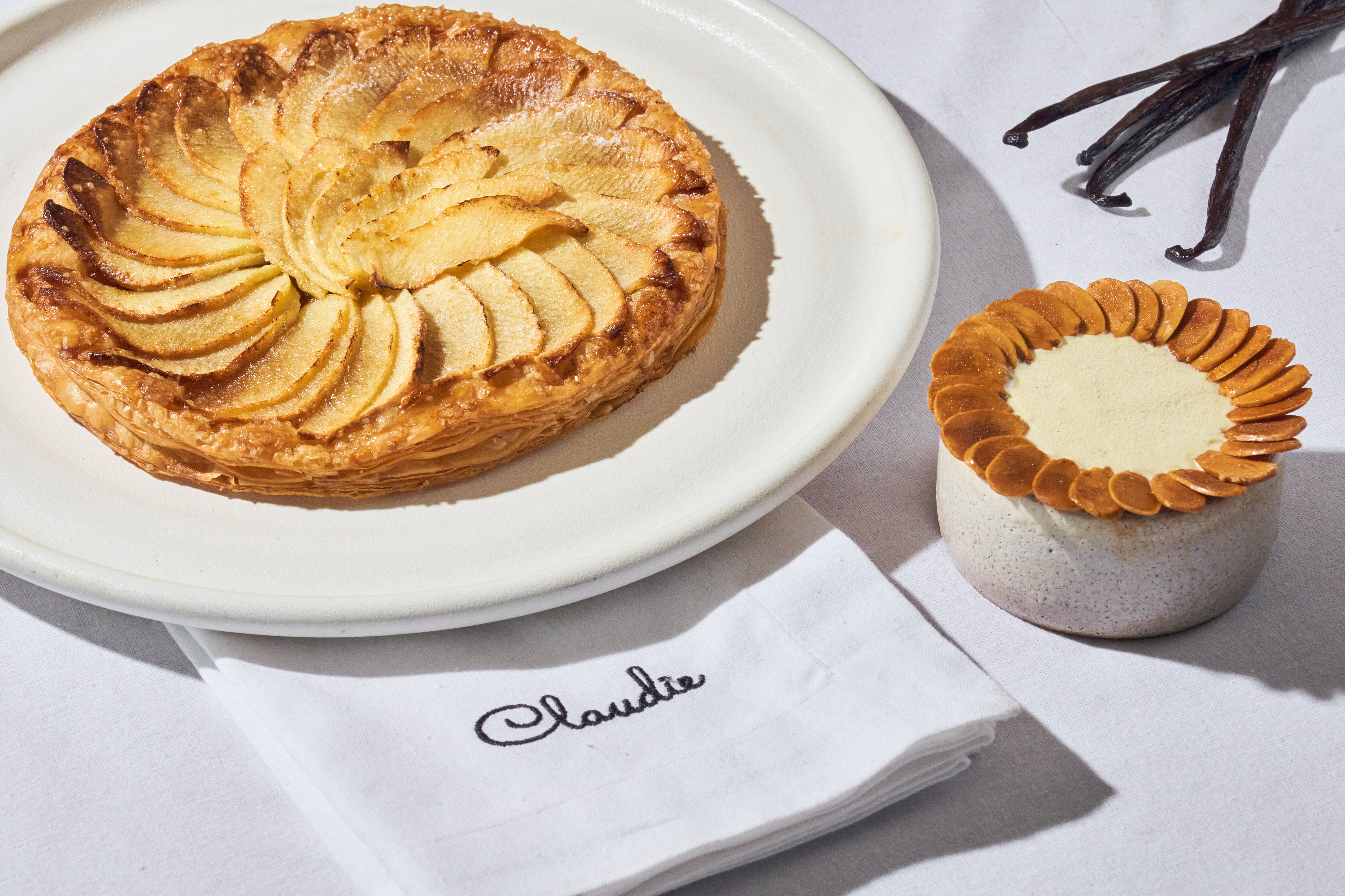 “This apple tart is a warm hug,” shares Michaelidis, “and with the Provençal sweets (Nougat de Montélimar, Calissons d’Aix-en-Provence) it becomes a poetic finale.” A delicate puff pastry base layered with tart Granny Smith apples, sweetened with cinnamon sugar and finished with a scoop of bourbon vanilla ice cream. This dessert brings a touch of Provençal poetry to your summer table.