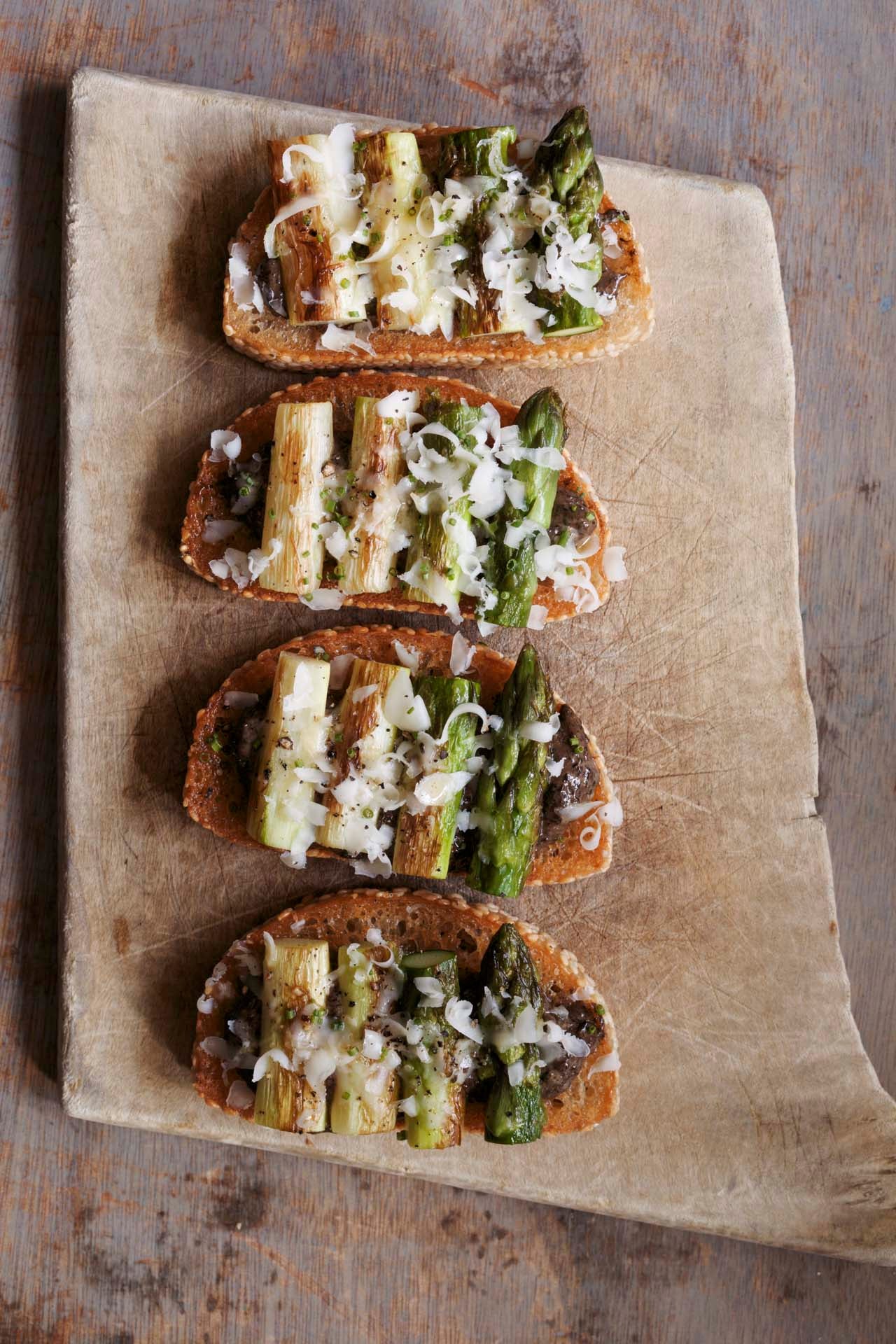 - Top with three to four pieces of asparagus.