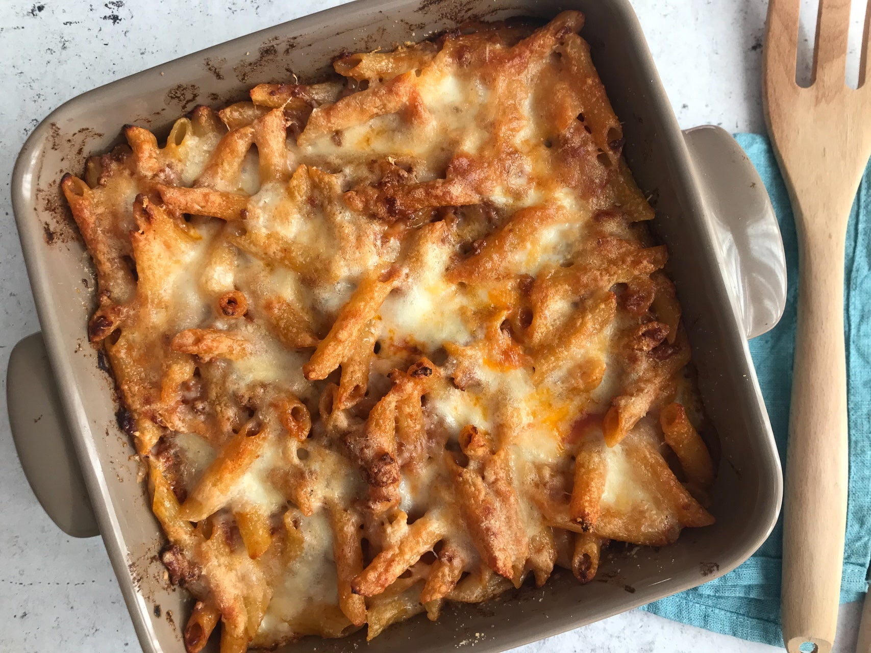 Baked mostaccioli is a dish that comes from Italian cuisine. It is actually a recipe traditionally made with leftover pasta. The sauce resembles a Bolognese sauce, but be careful not to confuse it because the difference is substantial.