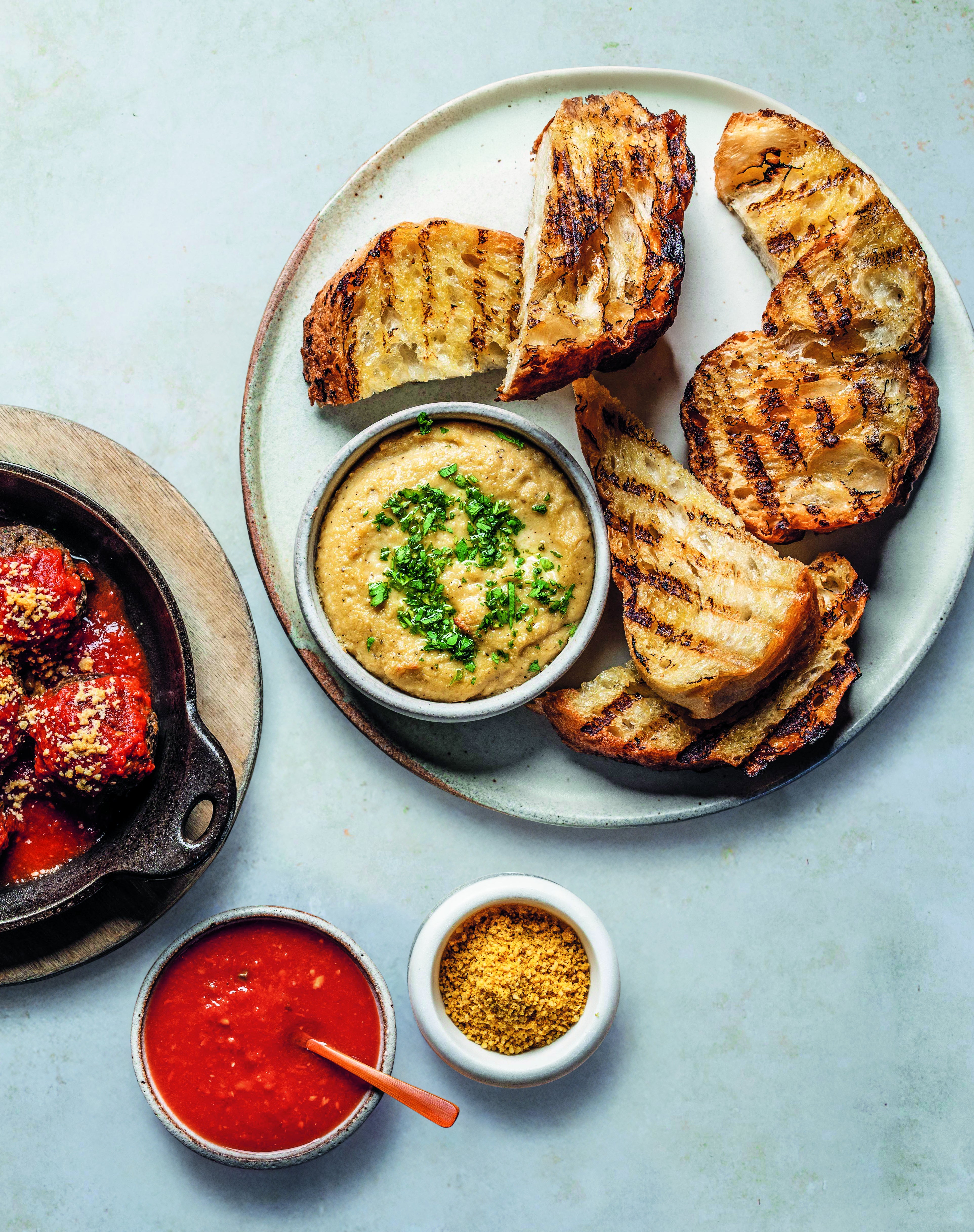 One of the best-selling dishes at Pura Vita, this baked ricotta captures Tara Punzone’s love for abundance and Italian comfort. The cashew-based ricotta turns golden and bubbling in the oven, finished with olive oil and parsley, and served alongside grilled ciabatta—an homage to the antipasti platters that filled her family’s table growing up.