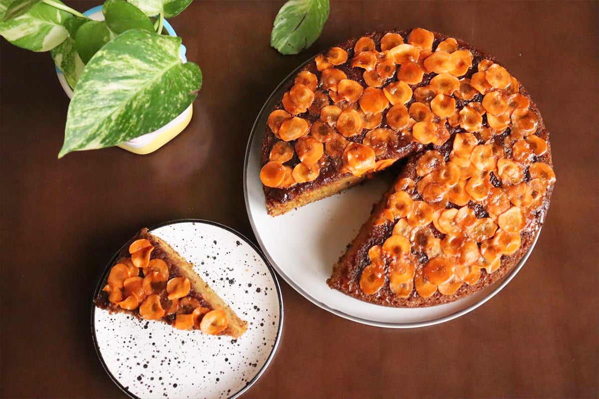 Brush the bread with the caramel with the help of a brush and stick the carrot slices on the bread and finally cover the caramel slices with the remaining caramel.