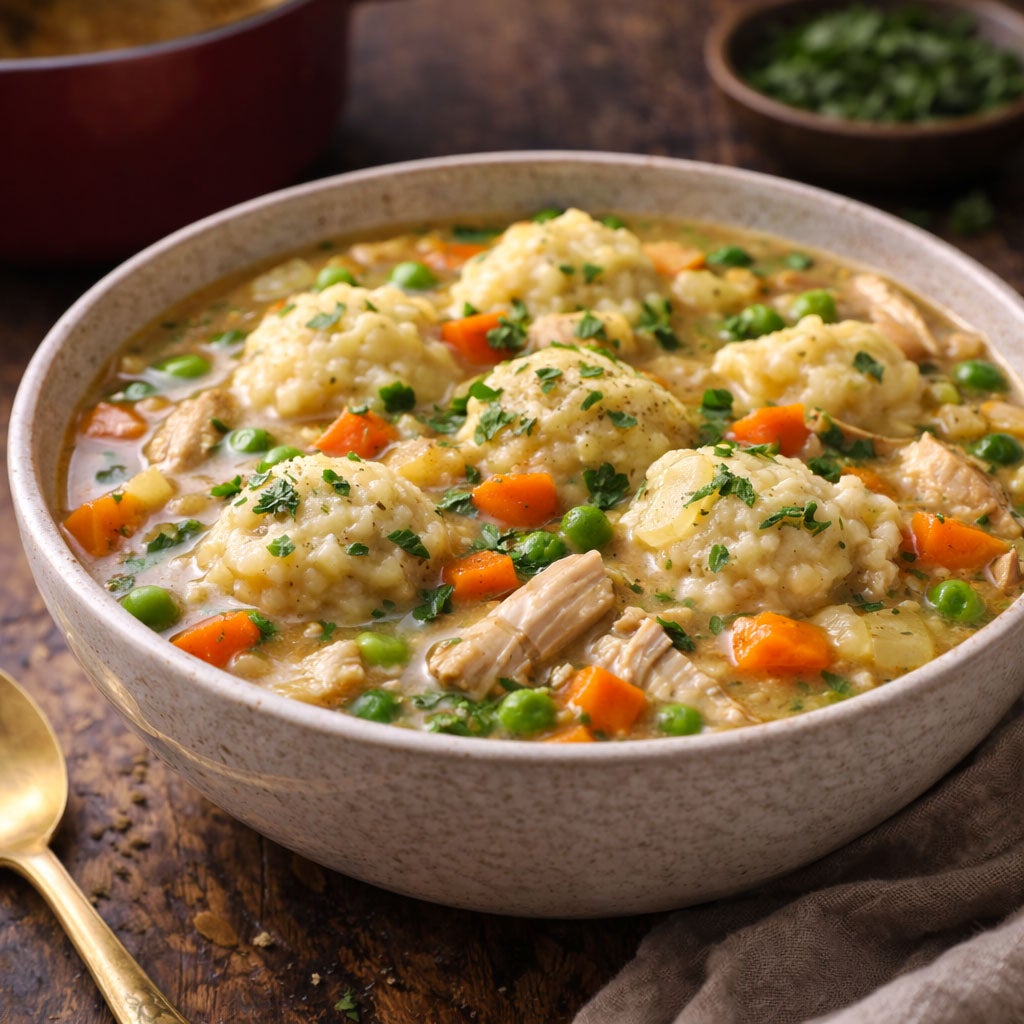 The trick to making the perfect chicken and dumpling soup is not to peek into the pan while the dumplings are cooking. The dumplings need to steam to achieve a light texture and uncovering the pan releases the steam during the cooking process. Cake flour also helps to create lighter dumplings, as it has less gluten than regular all-purpose flour, and can be easily sourced from your local grocery store.