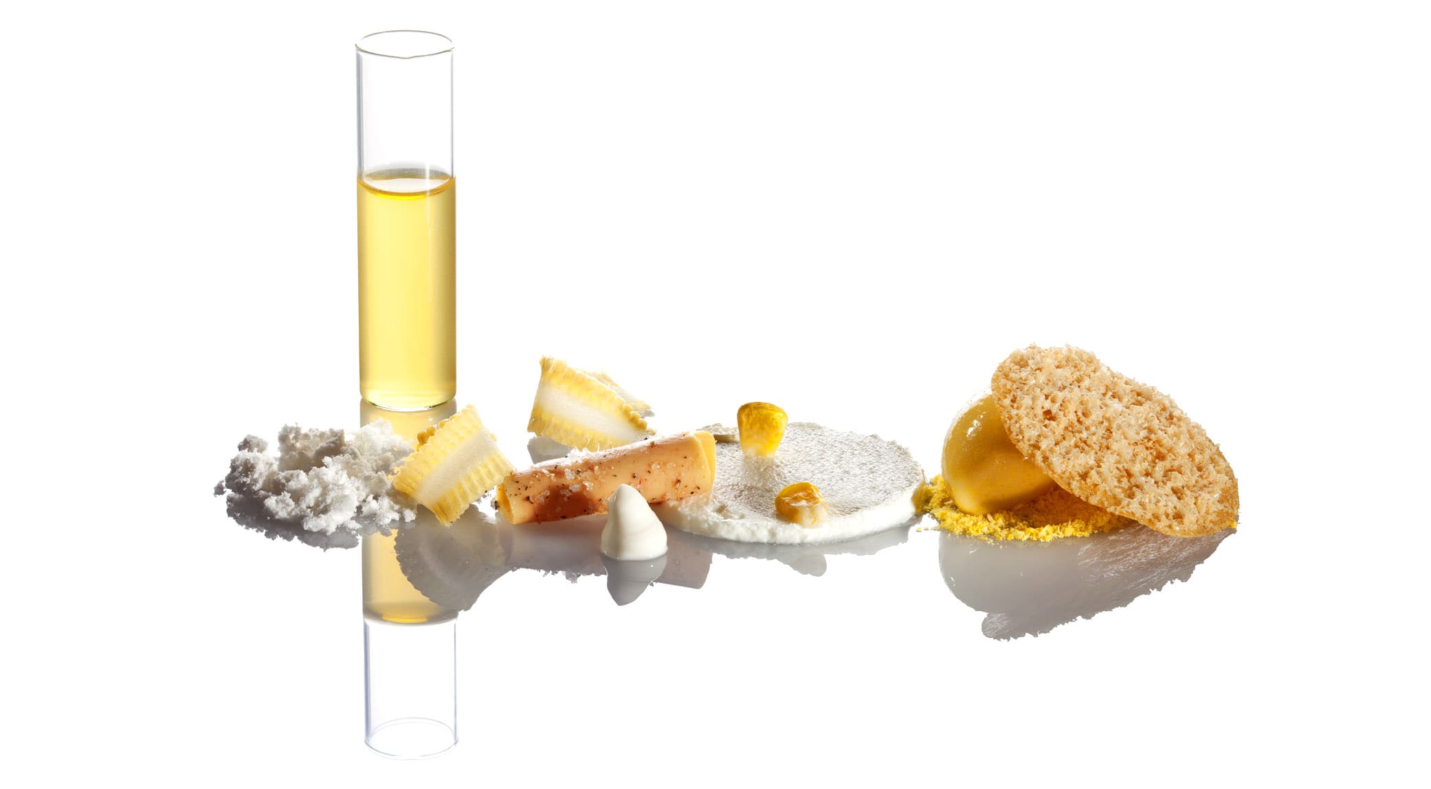 An exquisite recipe by chef Andreas Caminada with goose liver, fresh goat's cheese and maize.
