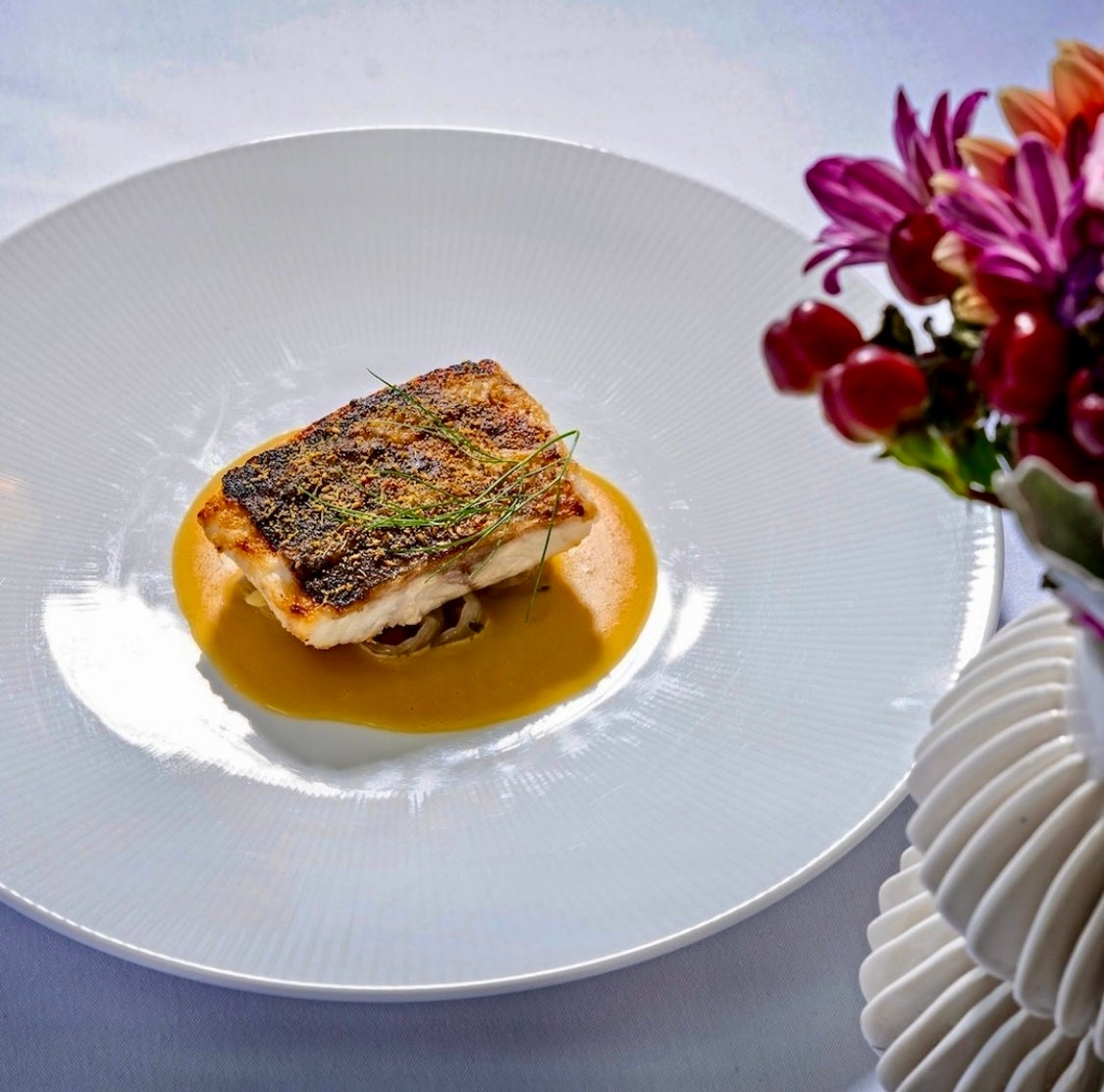 “This is a dish that celebrates the superior quality of Aquanaria sea bass,” says Chef Danny Lledó. The preparation balances natural sweetness, richness, and notes of anise, all while demonstrating how respect for the product and the art of cooking can elevate an exceptional fish.