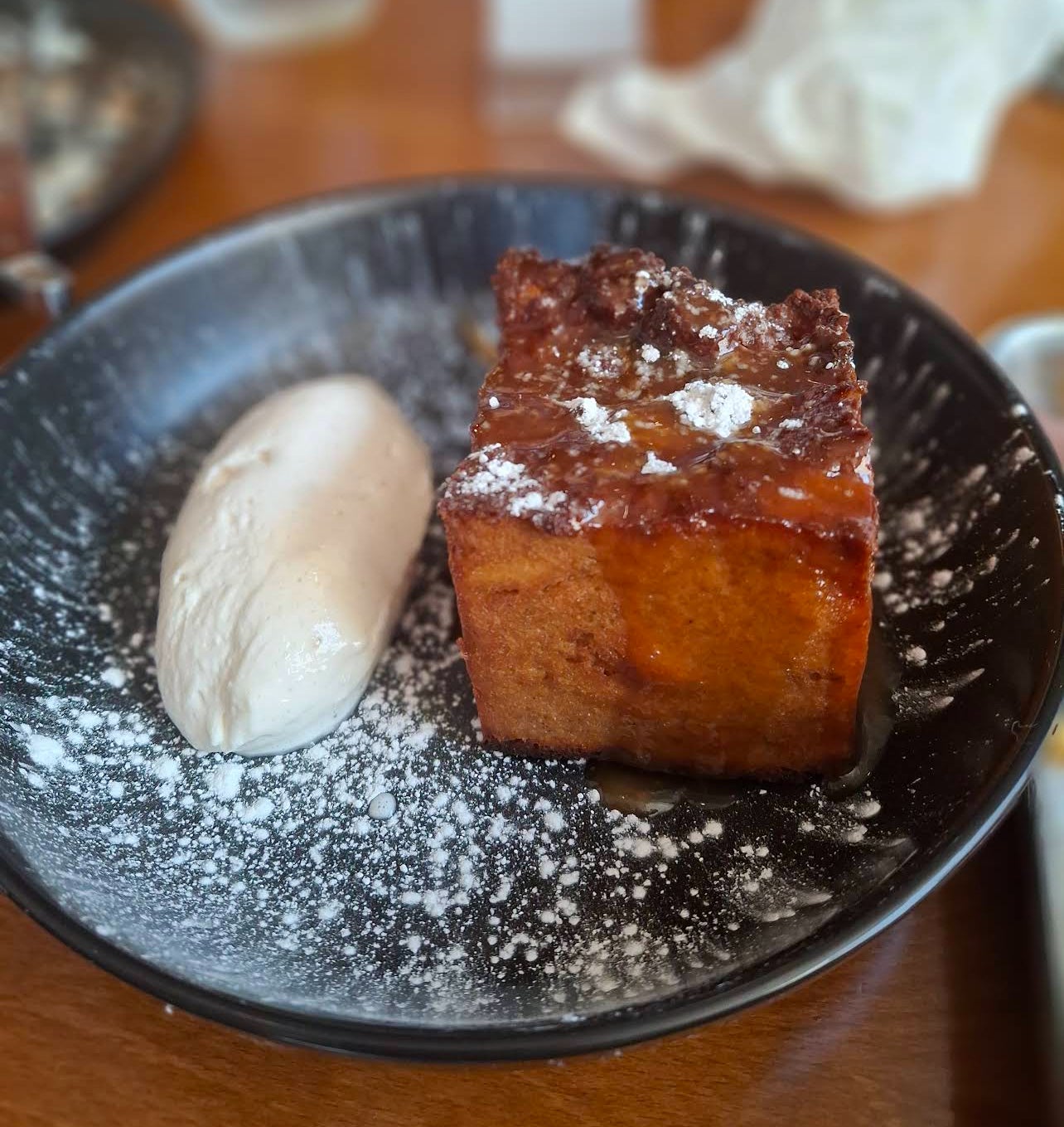 - Serve warm or cold with your preferred topping—brown butter and sea salt caramel with powdered sugar and Chantilly cream are McWhorter’s favorites, but crème anglaise, ice cream, or chocolate sauce are equally delicious.
