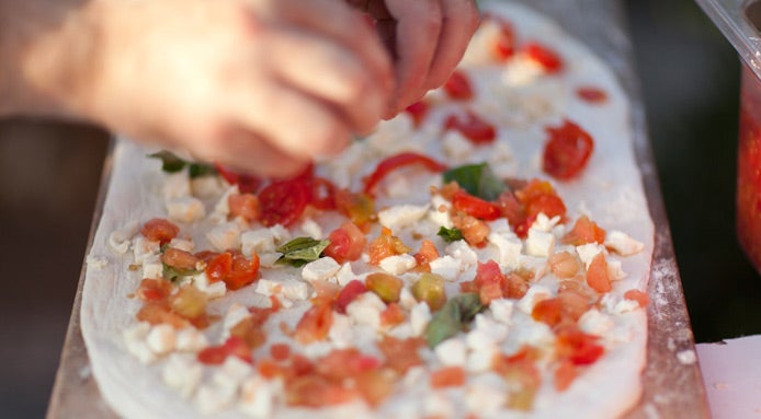 While the oven heats, garnish the pizza according to your own whim and desire.