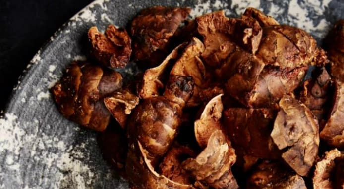 Deep fry the skins in hot oil and leave to cool down on paper.