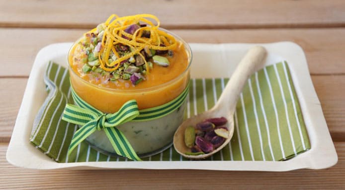 Add a little fresh chopped parsley and pour into cups. With the immersion mixer blend potatoes and roasted pumpkin with the remaining vegetable broth until creamy.