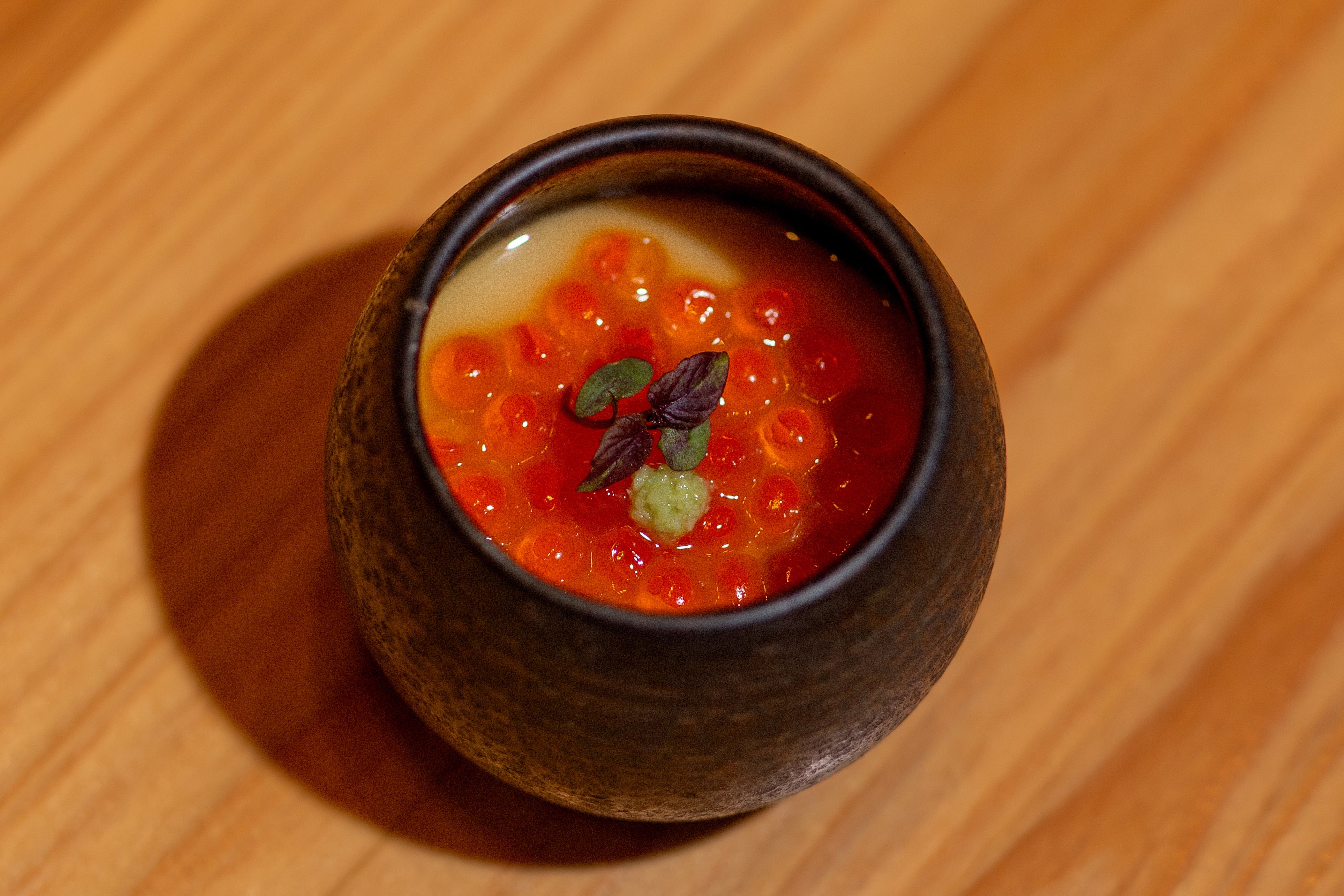 This delicate, savory egg custard is a staple of Japanese cuisine and a dish Chef Kazuhito “Kaz” Mabuchi returns to for its purity and restraint. His version uses jidori eggs, light seasoning, and a gentle steaming method that keeps the texture smooth and silky.