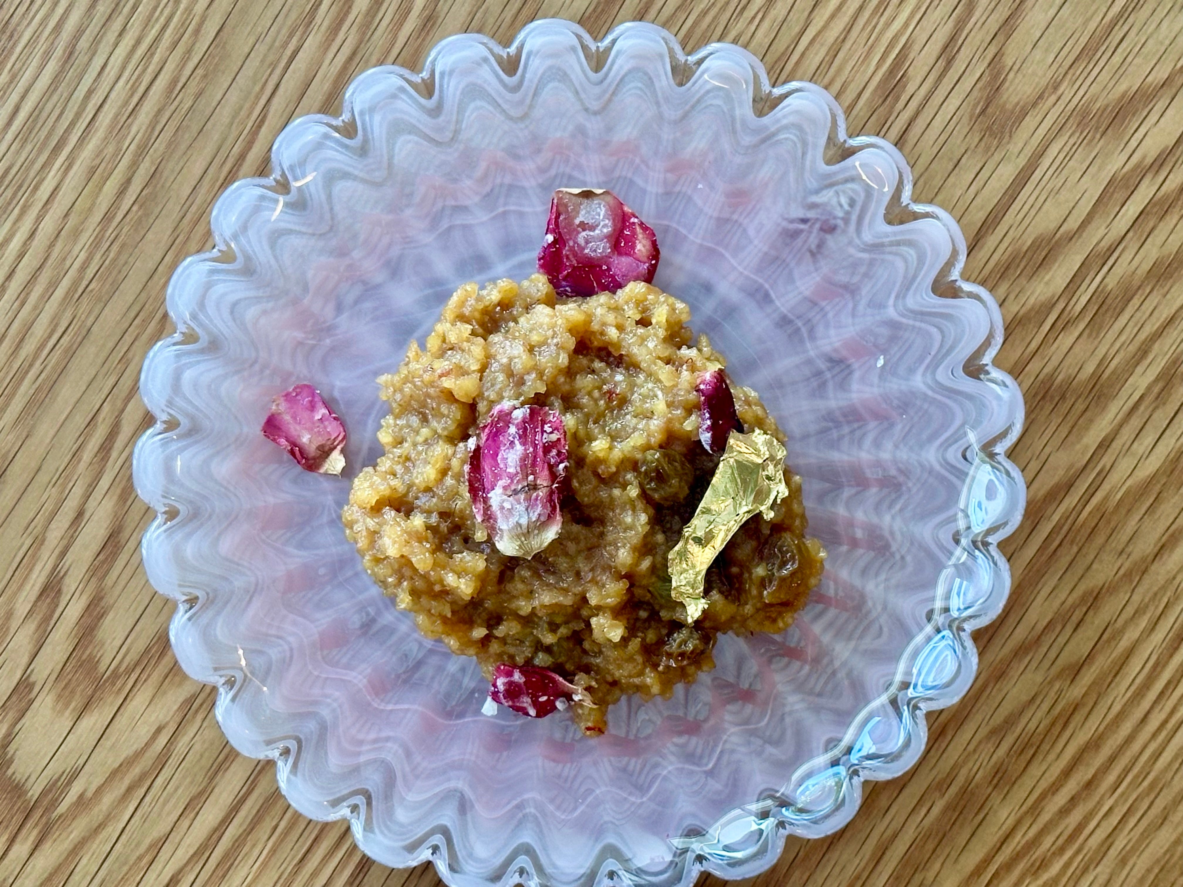 One of chef Heena Patel’s favorite Diwali dishes, Lapsi is a sweet, aromatic cracked-wheat pudding traditionally served alongside pulao, a fragrant rice pilaf. Rich with jaggery, ghee, and cardamom, it captures the essence of Gujarati comfort food—simple, soulful, and celebratory.