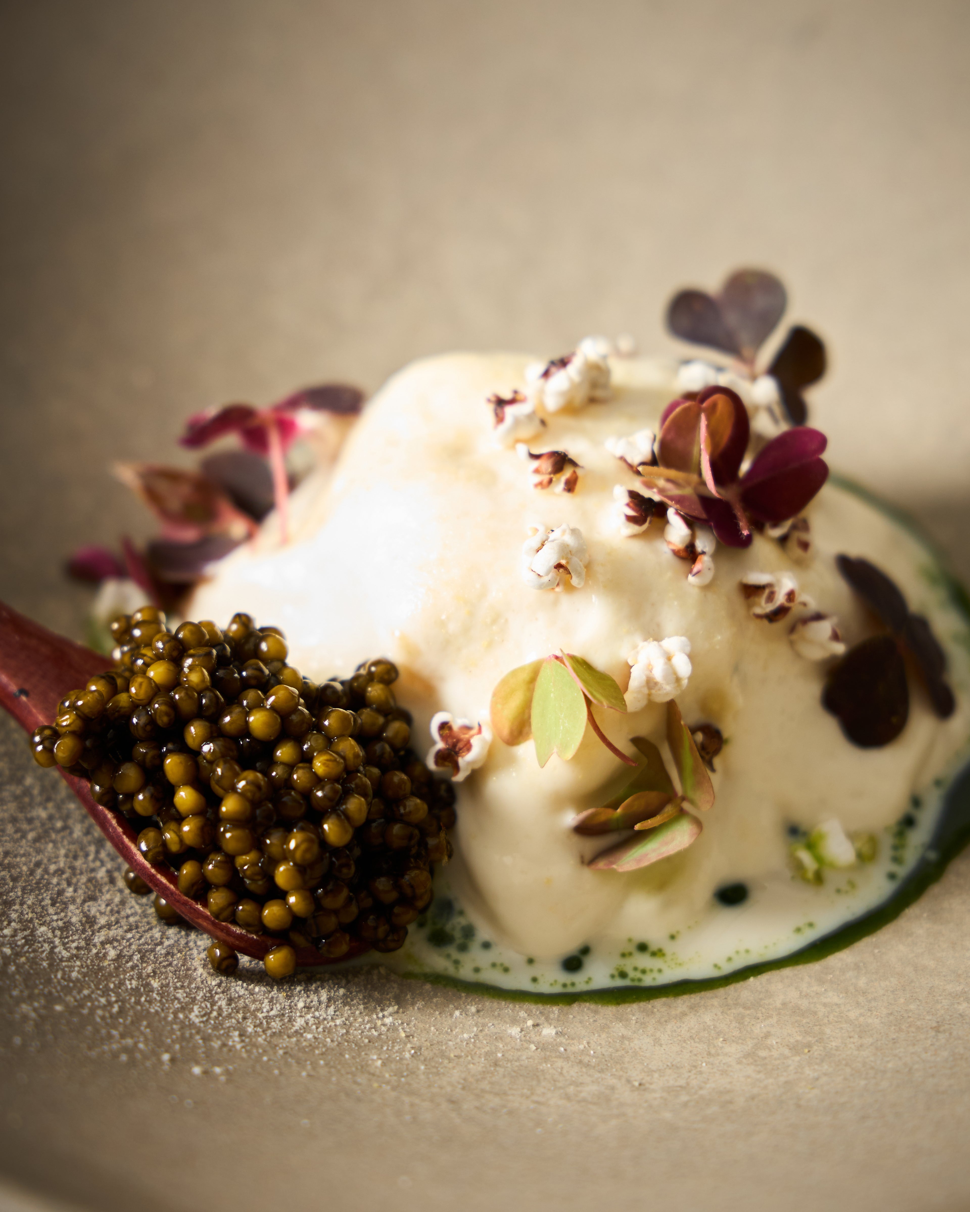 “A basic custard recipe can be applied to both savory and sweet applications. Being able to control the egg-to-liquid ratio really unlocks what you want to achieve, whether that’s something light or rich, using stock instead of cream, or making the best French toast or the lightest crème brûlée. With our ‘fried chicken’ custard, you get all the flavor of fried chicken without the heaviness, along with a texture that delivers flavor in a way you wouldn’t expect.”