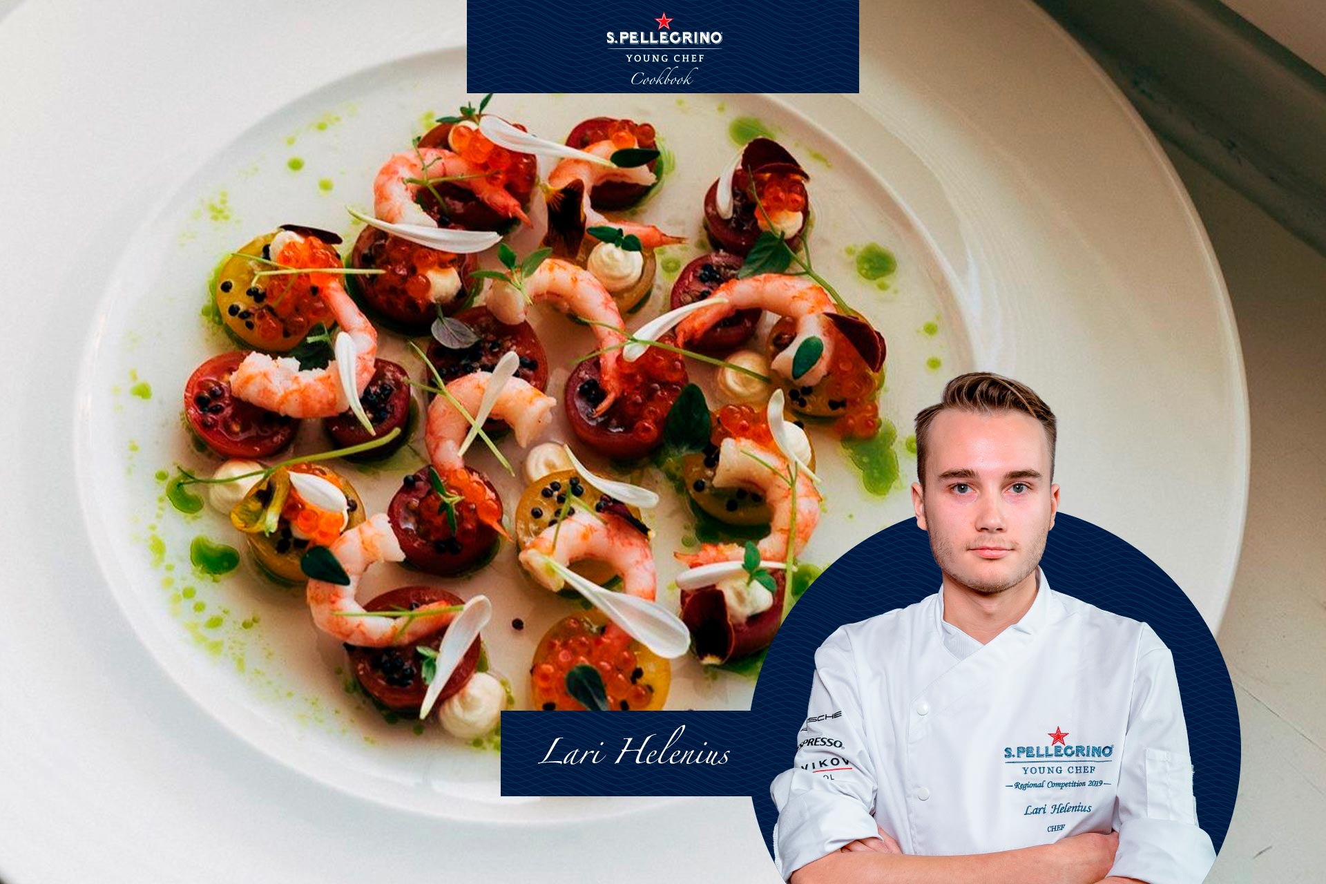 Chef Lari Helenius has created a recipe that is a real hymn to summer. In the dish, the umami of marinated cherry tomatoes meets the sweetness of Arctic shrimps and lightly smoked salmon roe from Finland.