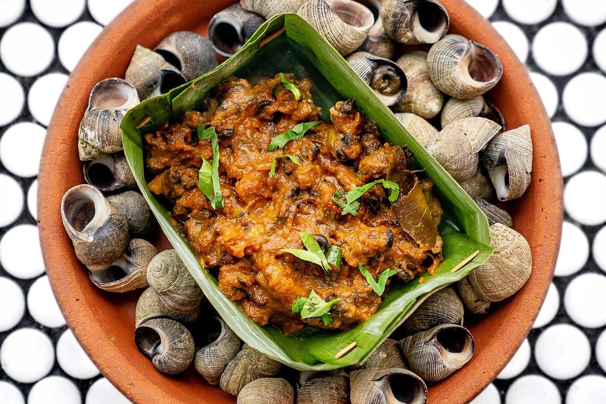 A recipe for snails prepared with ginger and tamarind, from chef Vijay Kumar of New York’s Semma.
