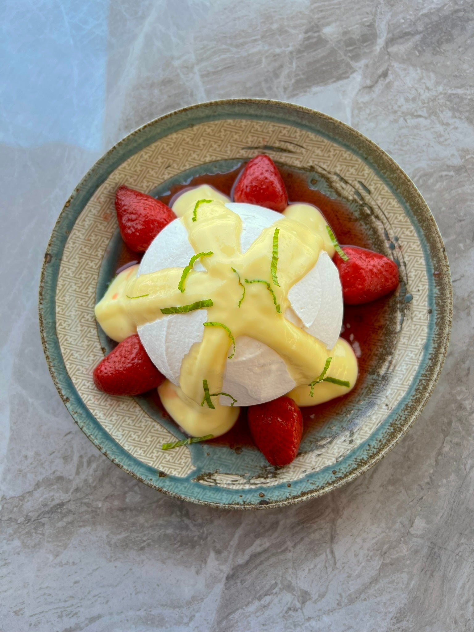 This dish is an homage to a “beautiful moment” Chef McGinty shared with his now fiancée. “Since she introduced me to this delicious way to end a meal, I have wanted to make it as a compelling and delicious tribute, and I think we've done that here, with berries, lemon, and the delightful variance of textures that make a pavlova special.”