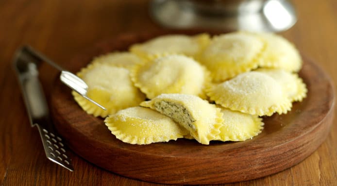 Follow this authentic Italian pasta recipe to prepare homemade cheese ravioli with a light ricotta and wild herbs filling