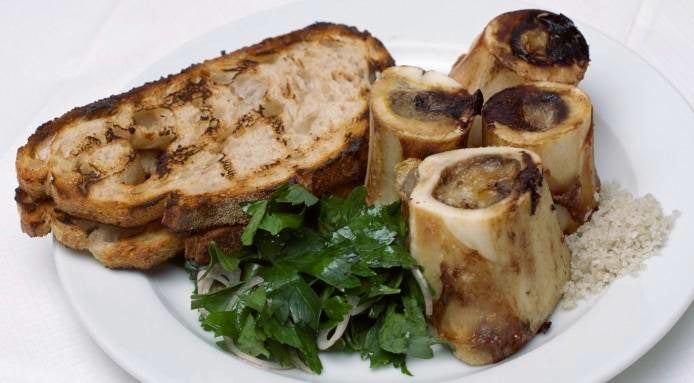 One of chef Fergus Henderson's most iconic dishes: roast bone marrow and parsley salad, the one dish that does not change on the menu at St. John restaurant.