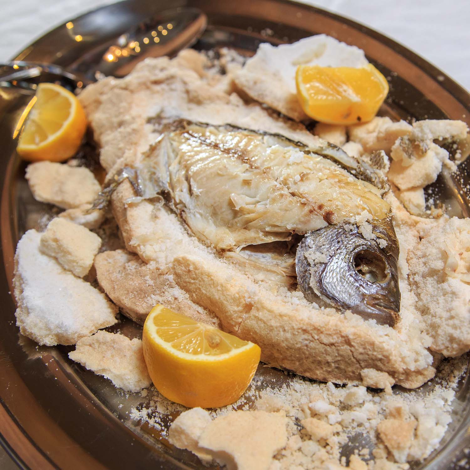 When choosing a fish for salt baking, look for whole varieties with firm, mild-flavored flesh. Types, such as sea bass, sea bream, and red snapper, work well in this recipe. The fish needs to be whole, of course, for the salt crust to form around it. Mild-flavored fish will also be better for pairing with a selection of aromatics and flavors, and won’t overpower the final taste of the dish. Take care to trim off the fins, or fin spines, prior to cooking to ensure these don’t poke you when packing the salt crust over the fish.